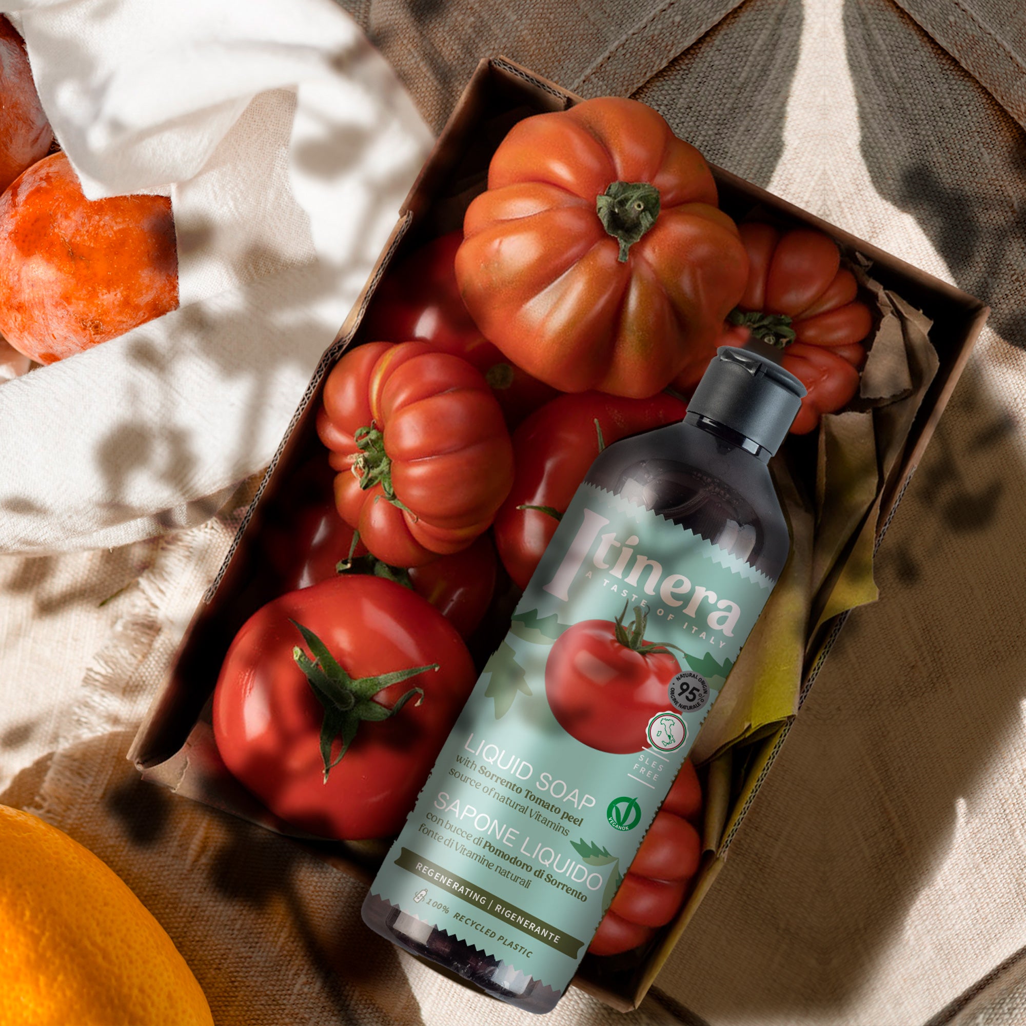 პომიდორი ბუნებრივად მდიდარია ანტიოქსიდანტებითა და ვიტამინებით. ფორმულა, რომელიც შეიცავს 95% ბუნებრივ ინგრედიენტებს, შეიცავს მცენარეული წარმოშობის ულტრა-რბილი ზედაპირულად აქტიური ნივთიერებების ნაზავს, მათ შორის ალოე ვერას წვენს და გლიცერინს, რაც უზრუნველყოფს კანის დატენიანებას და დამშვიდებას.