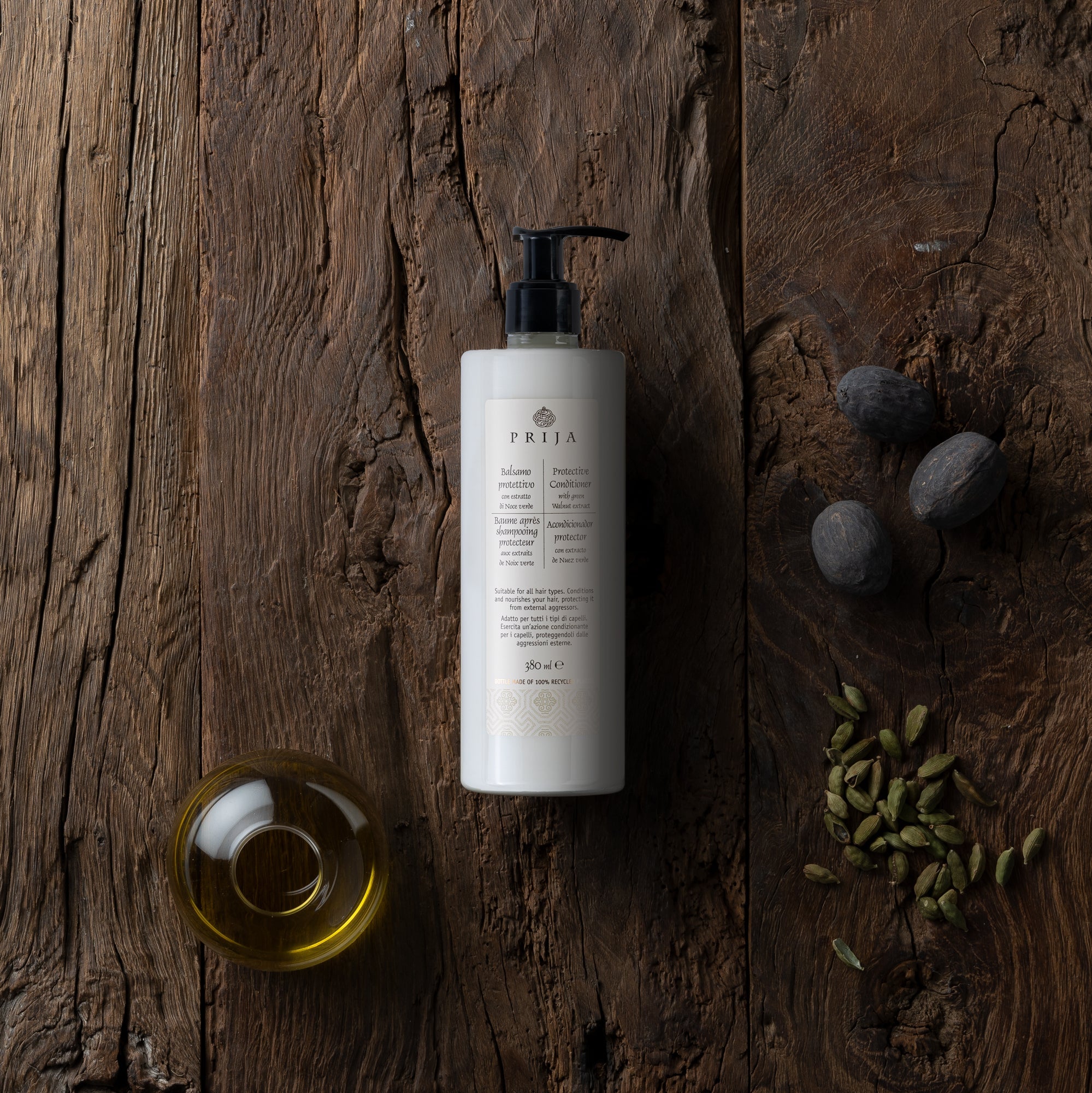 ფორმულაში შემავალი მწვანე კაკლის ექსტრაქტი იცავს თმას გარემოს მავნე ზემოქმედებისგან, ღრმად ატენიანებს და არბილებს. გამოირჩევა დახვეწილი სურნელით, რომელიც გაჯერებულია თბილი და დამამშვიდებელი ნოტებით.