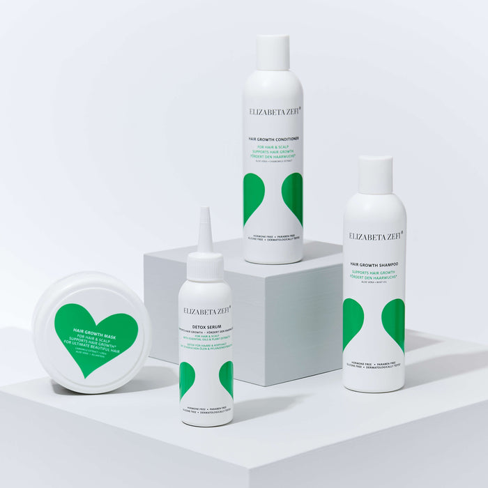 The Hair Growth Mask by Elizabeta Zefi nourishes the hair for a silky-soft feel, moisturises and stimulates hair growth thanks to the included aloe vera, glycerin and panthenol. The scientifically tested active ingredient follicusan counteracts hair loss with regular use. Results are visible after approximately 3 - 6 months of use.