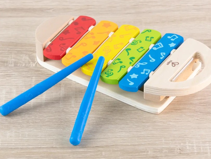 This unique xylophone from Hape has a variety of sounds. Each of its colored stripes makes a different sound when struck by the stick. The toy helps the child distinguish different sounds, develops hearing. It also helps to develop fine motor skills. The toy is made of wood and water-based paint, which is completely safe for your little ones.