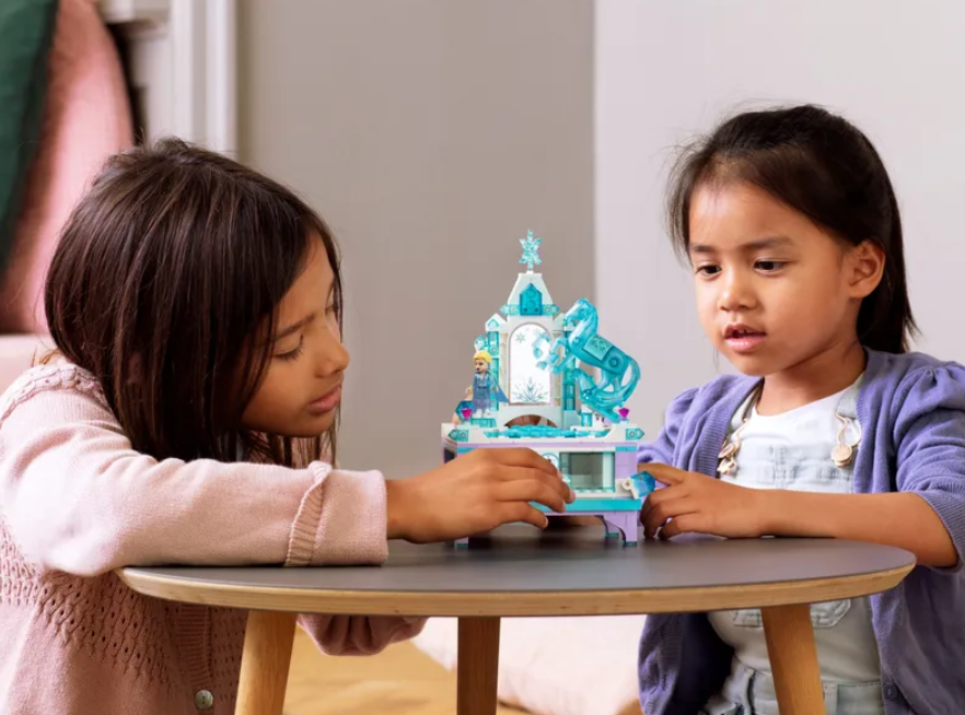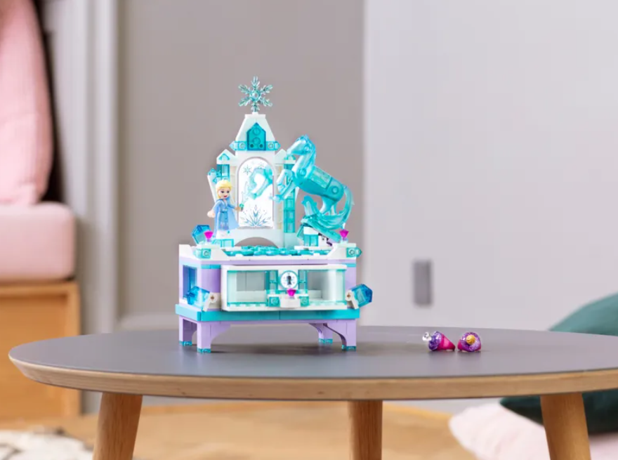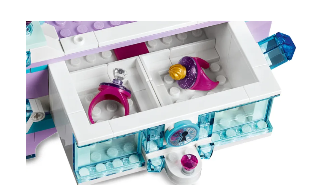 A favorite set for Lego Frozen fans. In the set you will find a treasure chest with its own lock (with motifs of Elsa's ice castle). It has spinning snowflakes that keep Elsa and Nokk spinning endlessly. The set includes: Disney animated characters: Elsa and Nokk, The Two Rings. Includes a mirror so kids can adjust the jewelry.