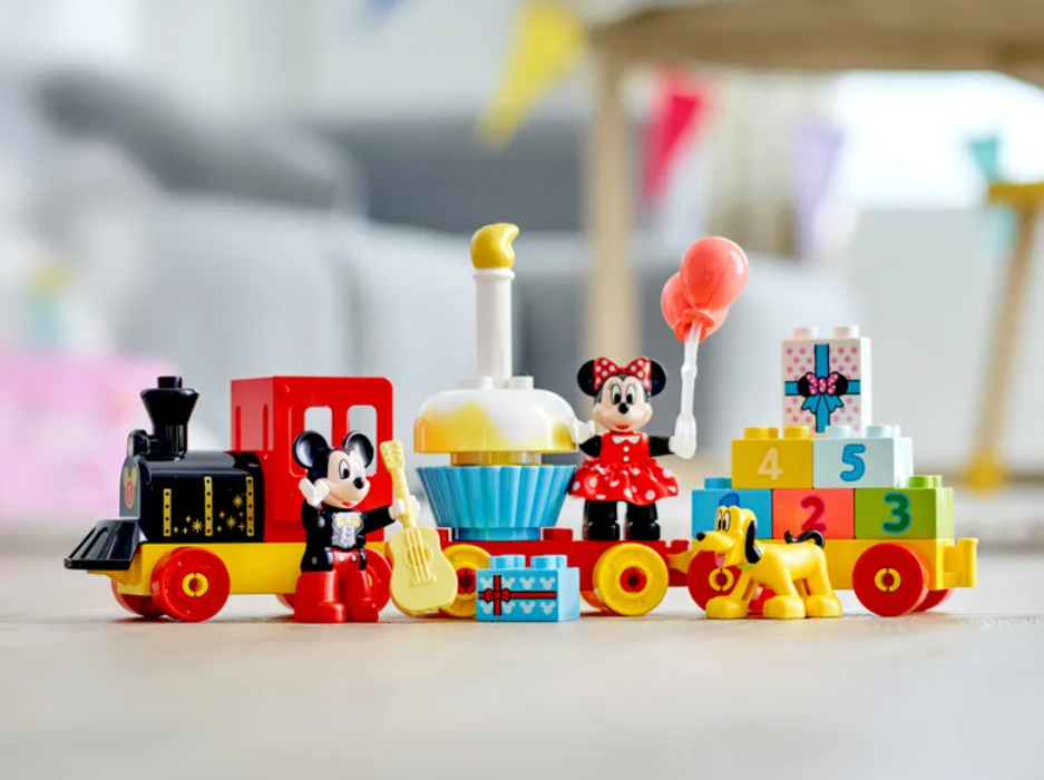 Celebrate little ones' birthdays in style with the LEGO® DUPLO® Disney Mickey & Minnie Birthday Train brick set.