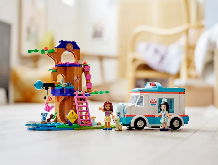 With Lego , the Vet clinic brick set, kids can build a cat house and perform a rescue operation if their fawn falls into the river.