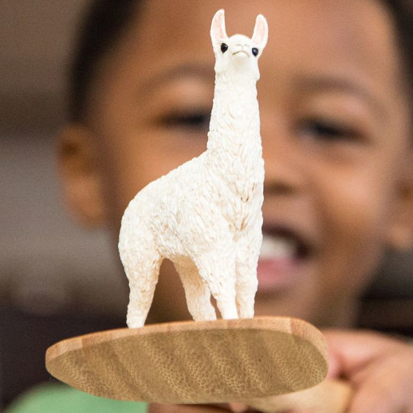 Offers a figure of a llama, which helps the child clearly imagine the real face of the corresponding creature.