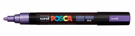 POSCA contains a water-based pigment ink that is water-resistant and can be used on almost any surface. Stays firmly on porous surfaces (wood, cardboard, fabric, etc.) and is removable from most smooth, non-porous surfaces (glass, plastic, metal, etc.). Great for multiple uses. The POSCA range includes five shapes and eight different nib styles, with the PC-5M medium nib being the most versatile. With clear, precise lines and beautiful colors, it is a favorite drawing marker for professionals and hobbyists alike. With this very comfortable tip, the marker is ideal for marking porous, irregular surfaces such as wood, stone, concrete, etc.